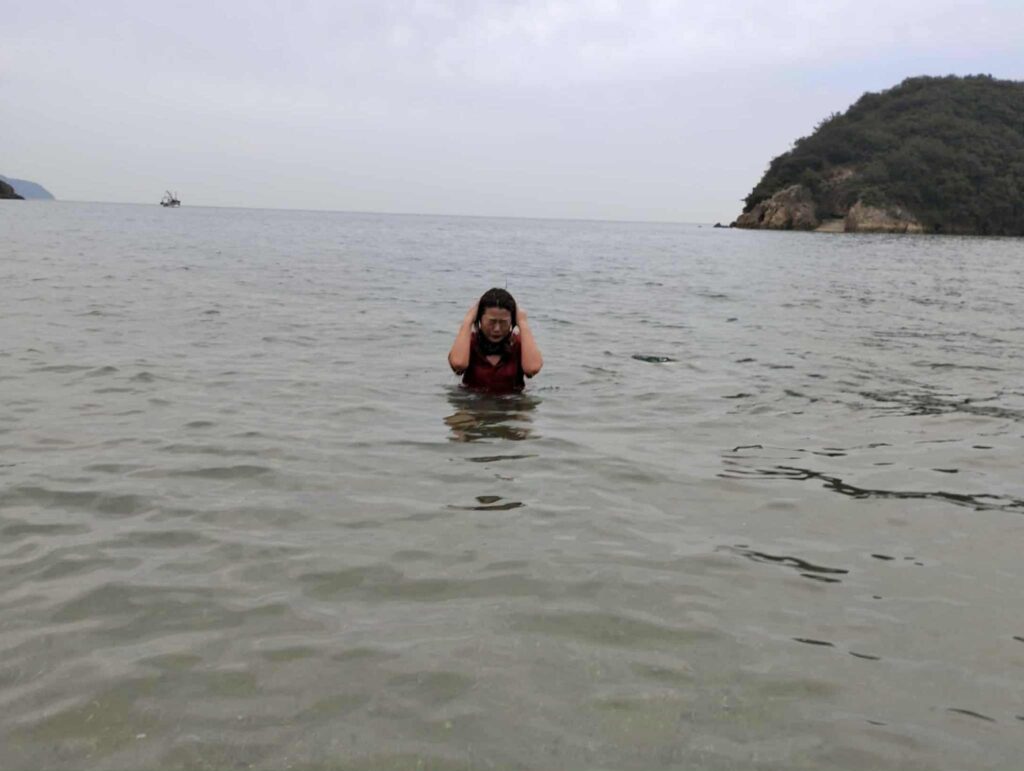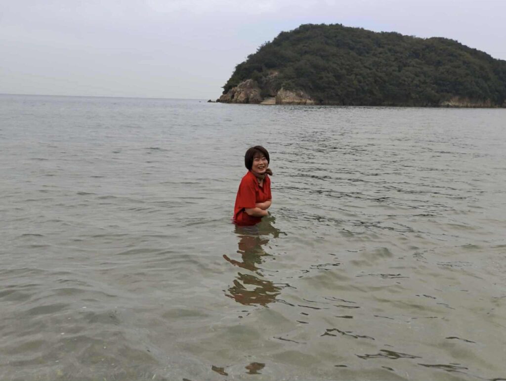 海に入ったその日、選名された方のお勧めに従い、私は瀬戸内海の砂浜に立っていましたが、最初は、本当に入れるかどうかとても不安だったんですよ。